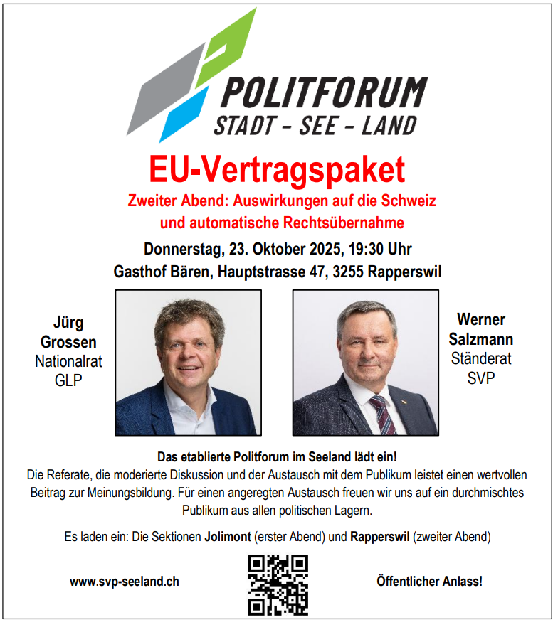 Politforum Stadt-See-Land – EU-Vertragspaket: Auswirkungen auf die Schweiz und automatische Rechtsübernahme