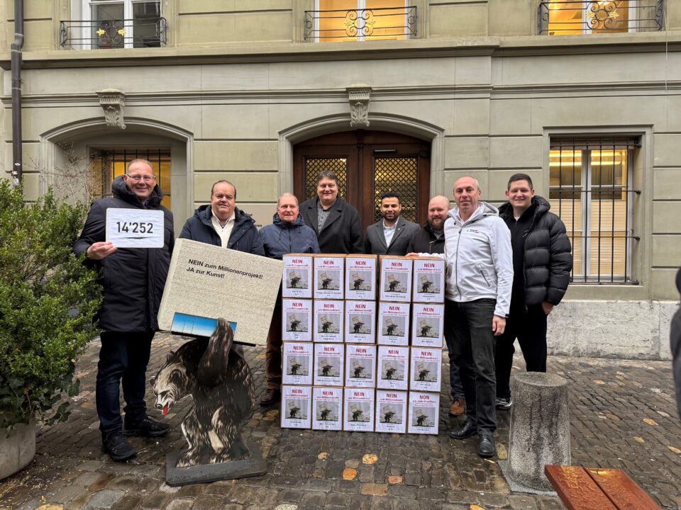 Am Mittwochmorgen hat ein überparteiliches Referendumskomitee die Unterschriften gegen den Kantonsbeitrag zum Projekt «Zukunft Kunstmuseum Bern» der Staatskanzlei übergeben. Getragen wird das Komitee von Vertreterinnen und Vertretern der SVP, GLP und EDU sowie von parteiunabhängigen Persönlichkeiten. Damit kommt das Geschäft vors Volk.