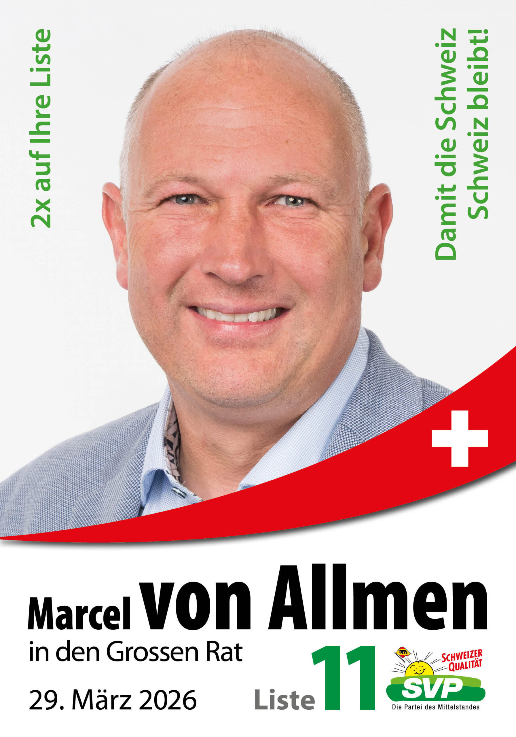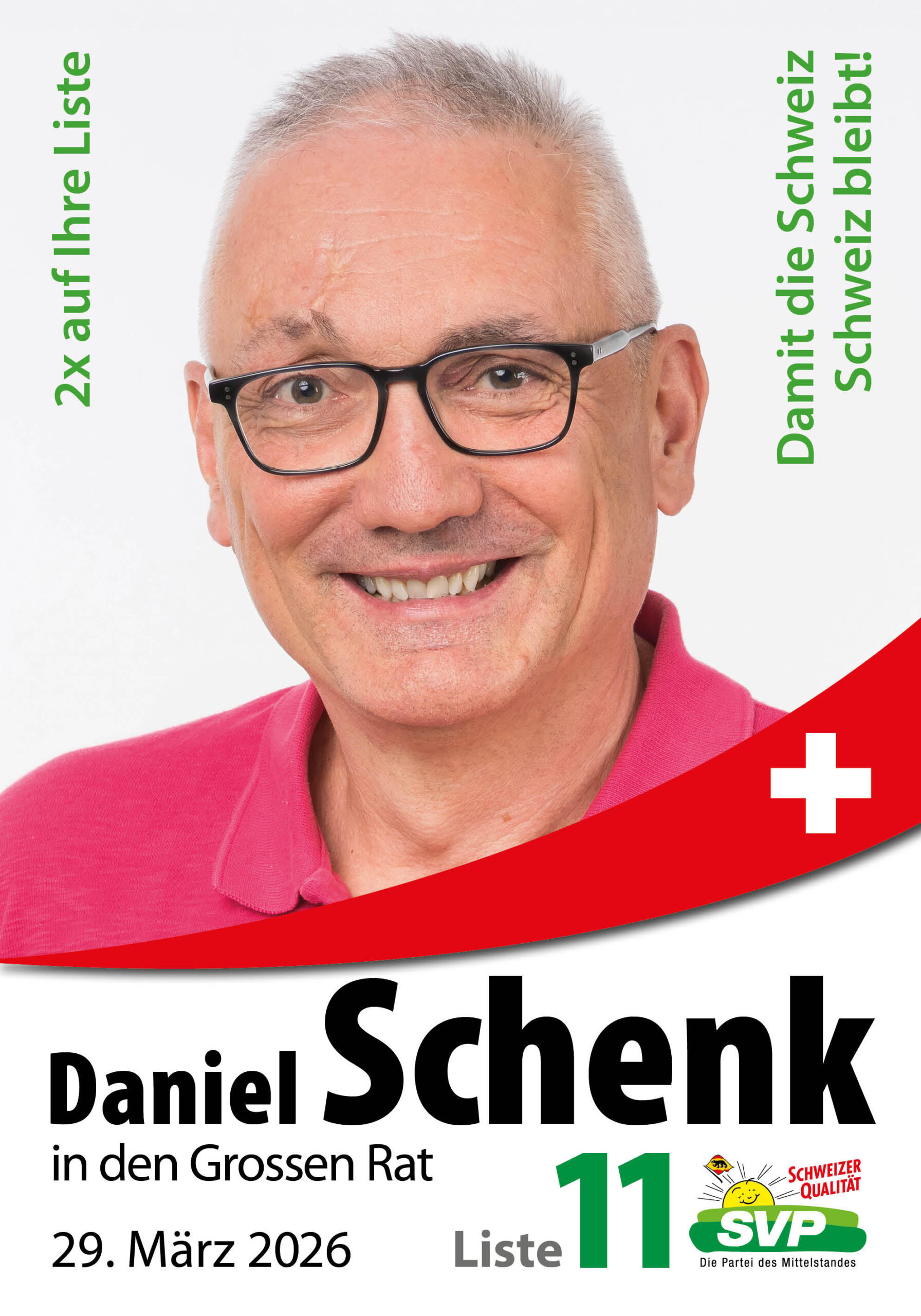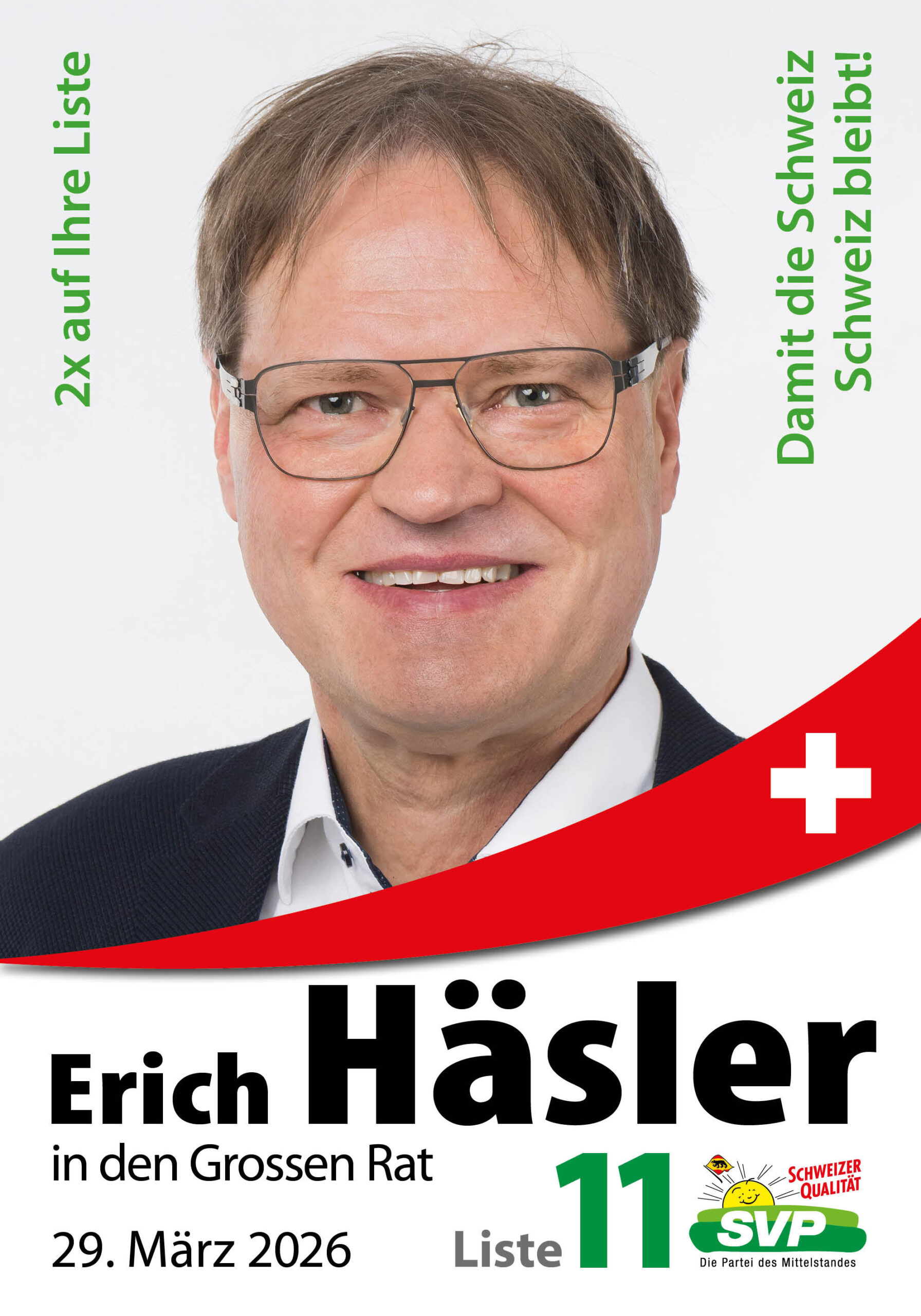 Am 29. März 2026 entscheiden wir, wer unsere Region im Grossrat vertritt. Wir brauchen Persönlichkeiten, die unsere Werte teilen, Verantwortung übernehmen und mit Herzblut für unsere Heimat kämpfen.