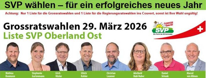 Am 29. März 2026 Liste 11 SVP Interlaken-Oberhasli wählen